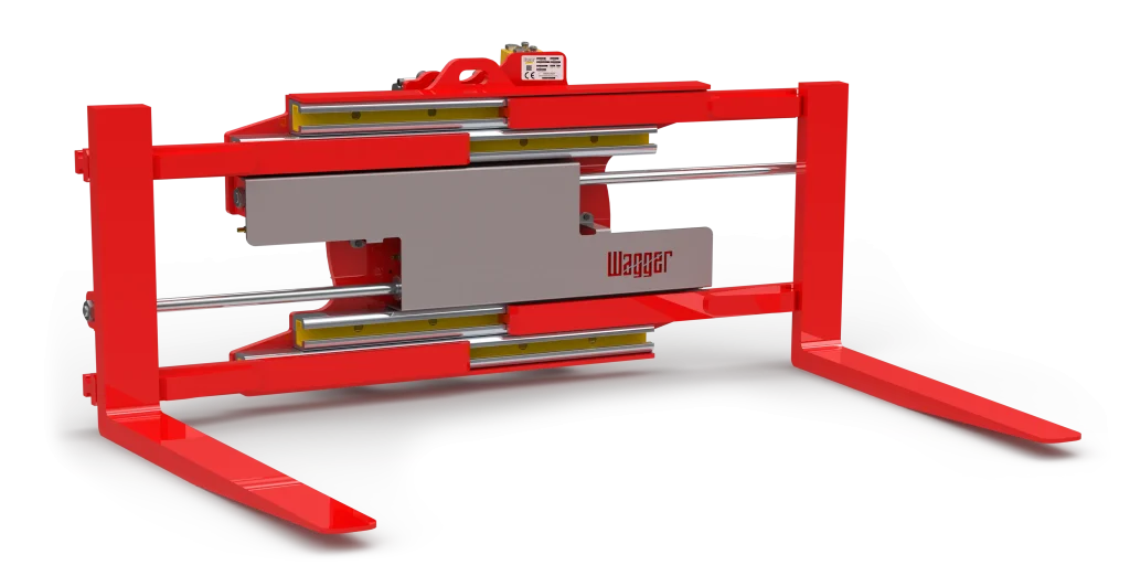 The Wagger Rotating Fork Clamp is a clamp attachment designed to both grip a load securely and rotate it fully via a hydraulic rotation mechanism. This feature allows operators to change load orientation directly from the cab, making it ideal for sensitive or orientation-critical handling tasks such as paper rolls, bales, crated goods, or other packaged materials.