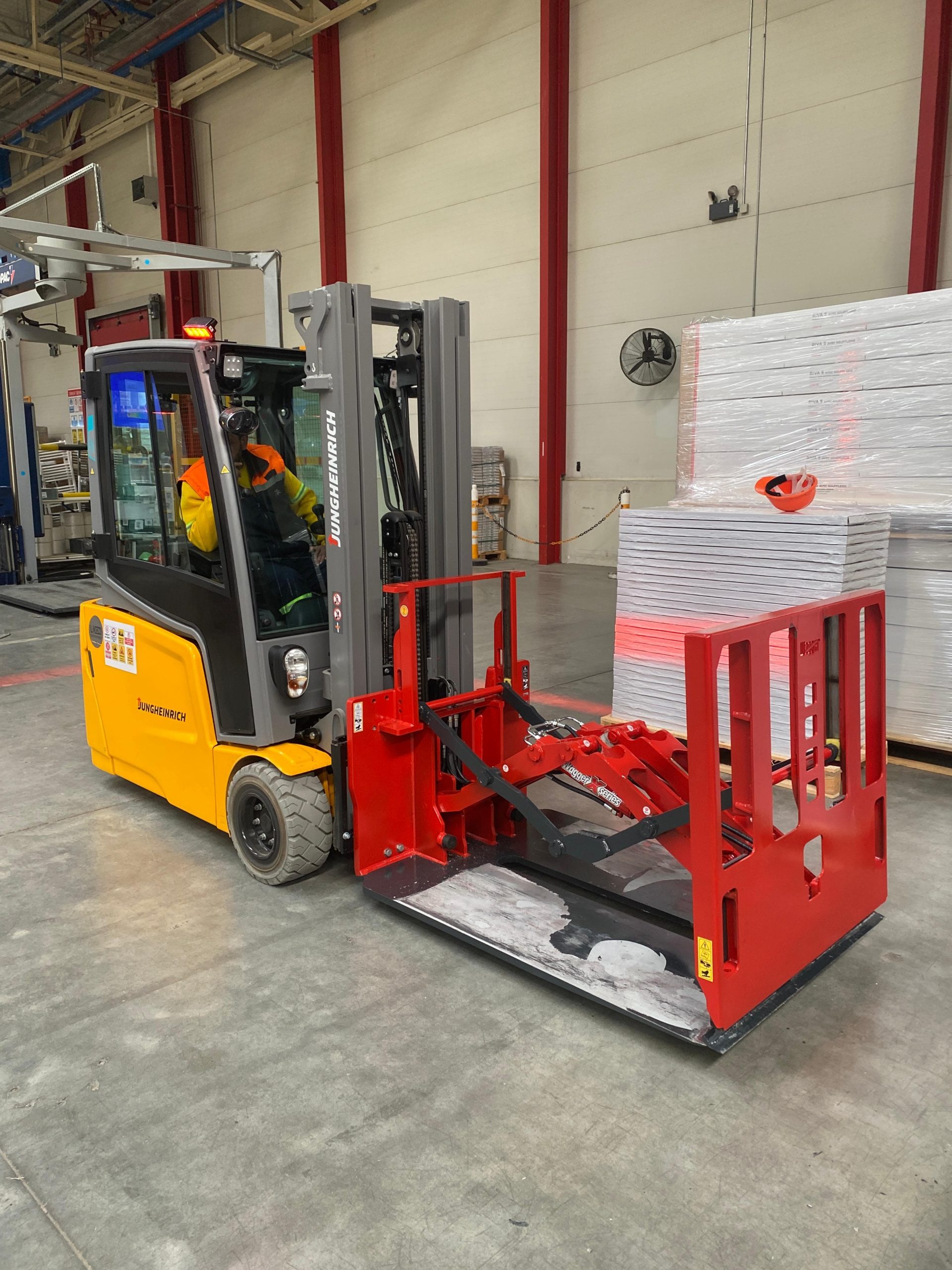 This system removes the need for traditional pallets, significantly reducing transportation costs and maximizing container space utilization. Thanks to its robust construction and high clamping force, it delivers reliable performance even when handling heavy or irregularly shaped loads. The Wagger Push-Pull Attachment accelerates loading cycles, providing substantial time and cost savings in material handling operations.