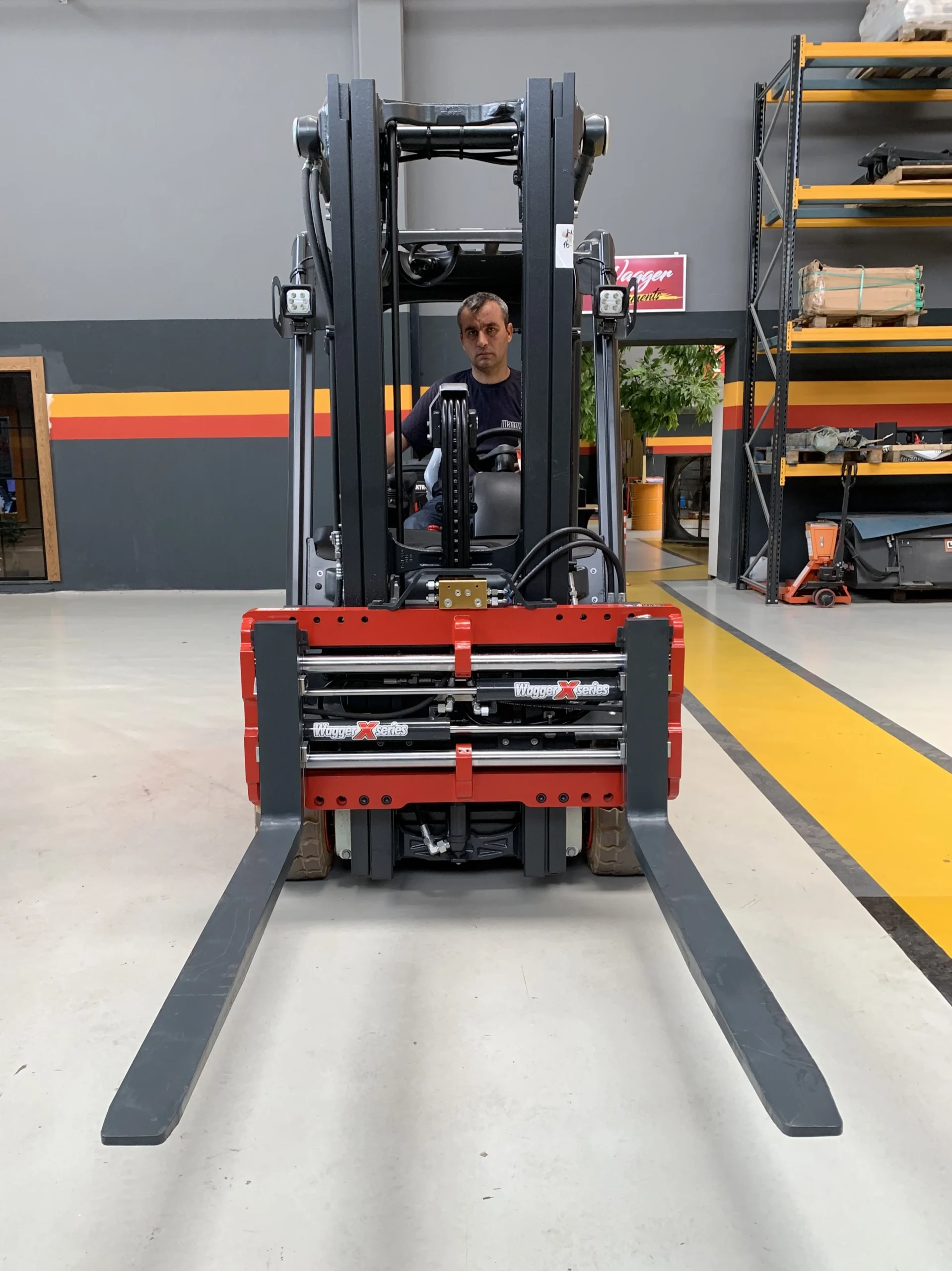 Wagger Çatal Konumlandırıcı, farklı boyutlardaki yüklerin hızlı ve hassas şekilde taşınabilmesi için çatal aralığının operatör tarafından kabin içinden kolayca ayarlanmasını sağlar. Hidrolik kontrollü yapısı sayesinde yükleme süresini kısaltır, palet hasarlarını en aza indirir ve operatörün manuel ayar ihtiyacını ortadan kaldırarak iş güvenliğini artırır. Sağlam gövde yapısı ve geniş görüş alanı sunan tasarımıyla, dar depo alanlarında dahi paletlere kolay ve doğru giriş imkânı sağlar. Lojistik merkezleri, depolar, dağıtım noktaları ve endüstriyel üretim sahaları için ideal olan Wagger Çatal Konumlandırıcı, malzeme taşıma süreçlerinde maksimum verimlilik ve esneklik sunar.