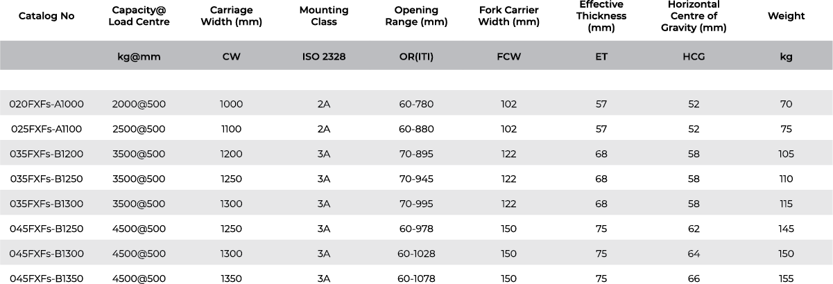 Entegre yan kaydırma (sideshift) fonksiyonu, forkliftin konumunu değiştirmeden yükün hızlı bir şekilde hizalanmasını sağlar. ISO standart kancalı veya cıvatalı çatallar ile sunulur ve Class II–IV taşıyıcı ve forkliftlerle uyumludur. Ağır hizmet tipi düşük sürtünmeli rulmanlar ve bağlantılı silindir sistemi, senkronize çatal hareketi ve uzun ömürlü dayanıklılık sunar — depo, dağıtım ve üretim gibi zorlu çalışma ortamlarında dahi güvenilir performans sağlar.
